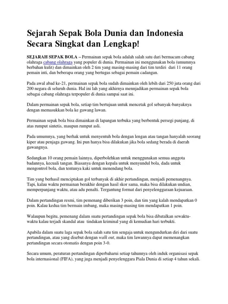 Sejarah singkat sepak bola dunia dan indonesia, cerita mengenai permainan sepak bola pada masa kuno hingga modern dibahas secara lengkap .